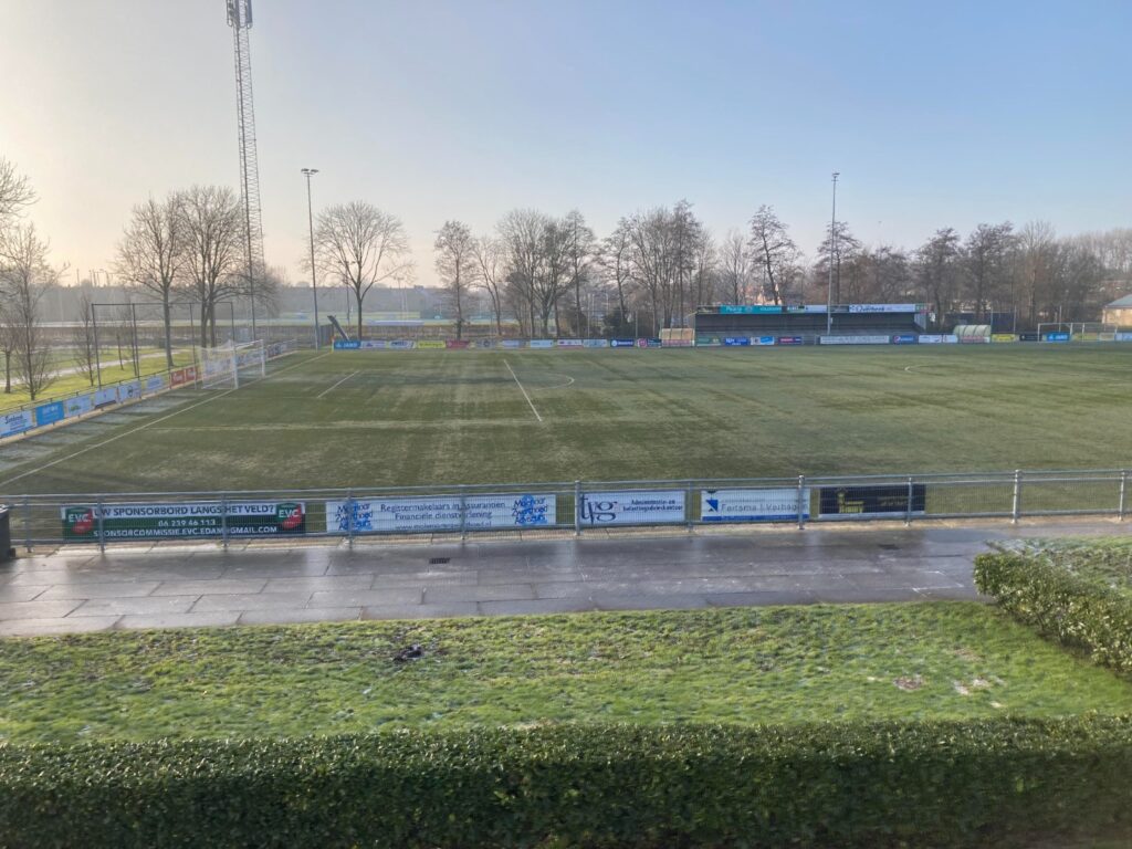 De laatste wedstrijd van 2022 brengt ons naar Edam. Als beloning voor het winnen van fase 1 mogen we aantreden in de volgende van de beker tegen het plaatselijke EVC. Een geduchte tegenstander. Van de 12 gespeelde wedstrijden verloren ze er slechts 1. Ondanks winterse omstandigheden waardoor veel clubs besluiten tot een afgelasting treffen we een prima bespeelbaar veld. Hadden we het met de arbitrage ook maar zo getroffen. Daarover later meer.
